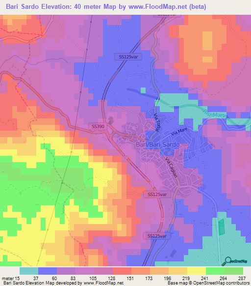 Elevation Of Bari Sardo Italy Elevation Map Topography Contour